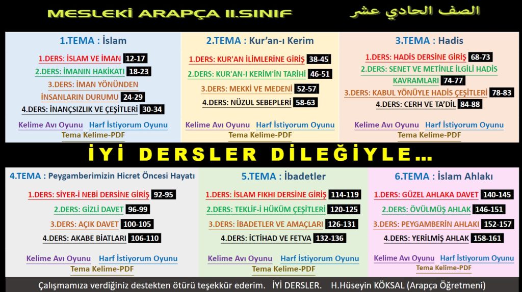 ** İmam Hatip Lisesi 11.Sınıf Mesleki Arapça Dersi için hazırlamış olduğum interaktif ÖRNEK DERS ÇALIŞMASI.
