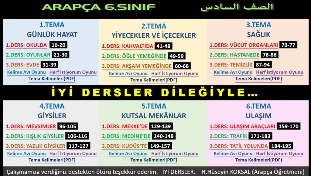 ** İmam Hatip Ortaokulu 6.Sınıf Arapça Dersi için hazırlanmış olan İNTERAKTİF ÖRNEK DERS ÇALIŞMASI.